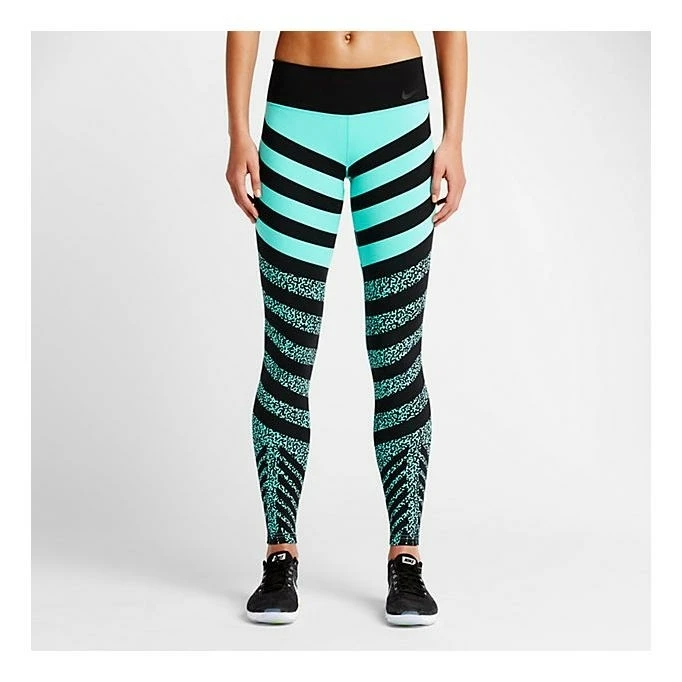 Le collant Legendary Mezzo Zebra noir et bleu de Nike pour femme est doté du tissu le plus doux de tout la gamme training Nike.