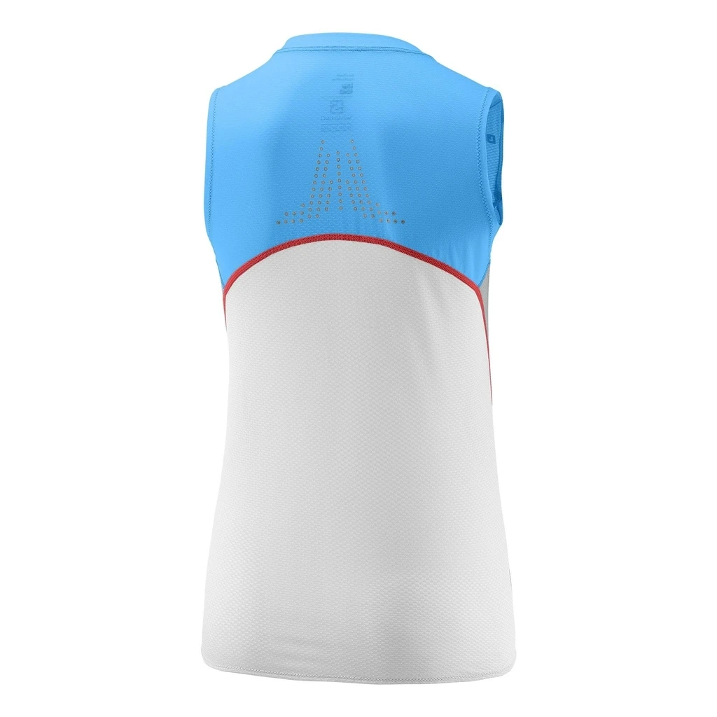 Le débardeur pour femme S-LAB S-Lab Sense Tank, ici décliné en coloris bleu, est conçu pour se porter très près du corps pour renforcer le maintien des muscles pectoraux et dorsaux supérieurs.